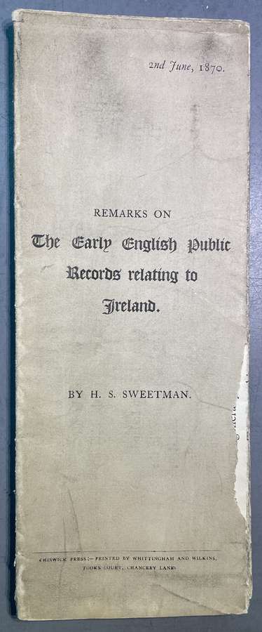 From correspondence concerning Sweetman, we know that he first broached the project in 1864, though the then Deputy Keeper, Thomas Duffus Hardy, showed little enthusiasm. Over the years which followed we find Sweetman working to show the value of the calendar and why he was the one to complete it. In 1868, Henry compiled a collection of extracts of deeds and writings found on the King’s Remembrancer memoranda rolls for the reign of Edward I (1272–1307), demonstrating that he could engage with documents. In the same year, on 14 December, he gave a lecture to the Royal Irish Academy on records relating to Ireland housed in England, which he published two years later as a pamphlet (TNA, LRRO 11/5).